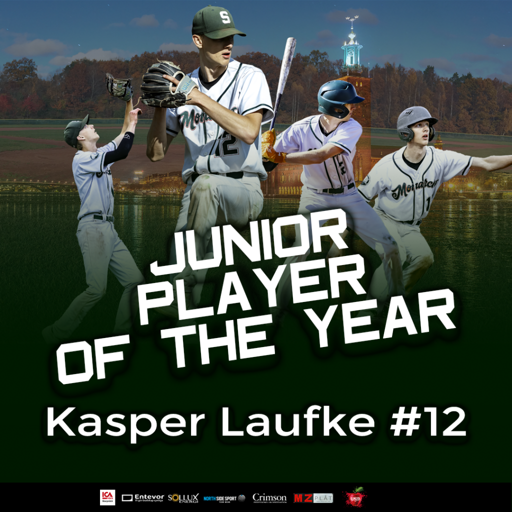 Förutom att Kasper tog stora steg i sin utveckling som spelare i seniorlaget så var han också en ledande spelare för vårt juniorlag. Både som pitcher och övriga defensiva delar av spelet samt som slagman tog Kasper fina steg framåt i sin utveckling och visar att hårt arbete lönar sig när han får ta emot priset som årets junior!